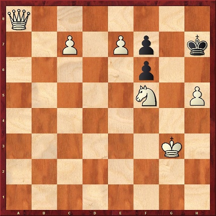 Za današnji svijet se govori da je jako užurban, ali ja sam pristalica sporijeg ritma. Popevka "A ja polehko" dobro pokazuje kako se treba postaviti prema općoj žurbi, a pozicija na dijagramu to pokazuje na šahovnici. Zadatak bijelog na potezu je da pobijedi crnog, a evo kako izgleda rješenje: